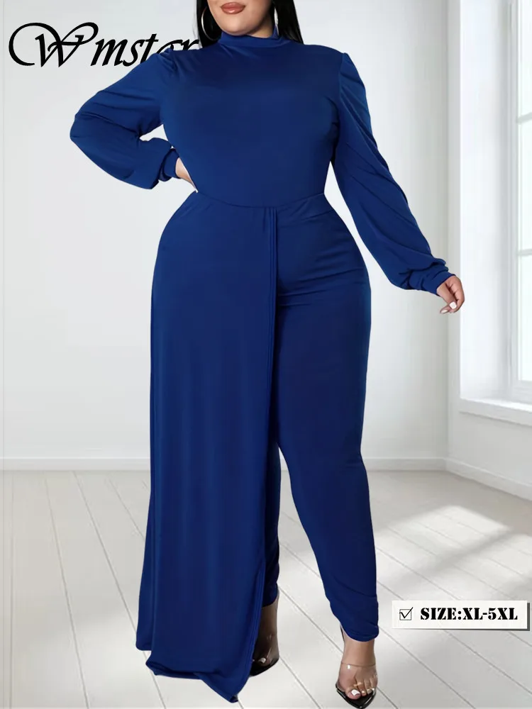 Wmstar Plus Size Women Jumpsuit Solid Color Puff Long Sleeve Bodycon One Piece Outfits Wholesale Dropshipping XL-5XL